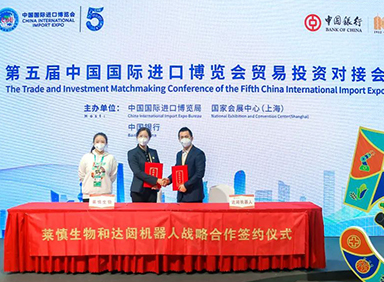 第五届中国国际进口博览会正在如火如荼举行。11月6日,上海莱慎生物科技股份有限公司(以下简称“莱慎生物”)与j9娱乐集团机器人股份有限公司(简称“j9娱乐集团”)签署生态战略协议,莱慎生物董事长助理兼营销总监薛东英、j9娱乐集团销售总监吴新明作为企业代表进行签约,这代表着j9娱乐集团云端机器人国家新一代人工智能开放创新平台生态业务在公共卫生领域大步迈进。